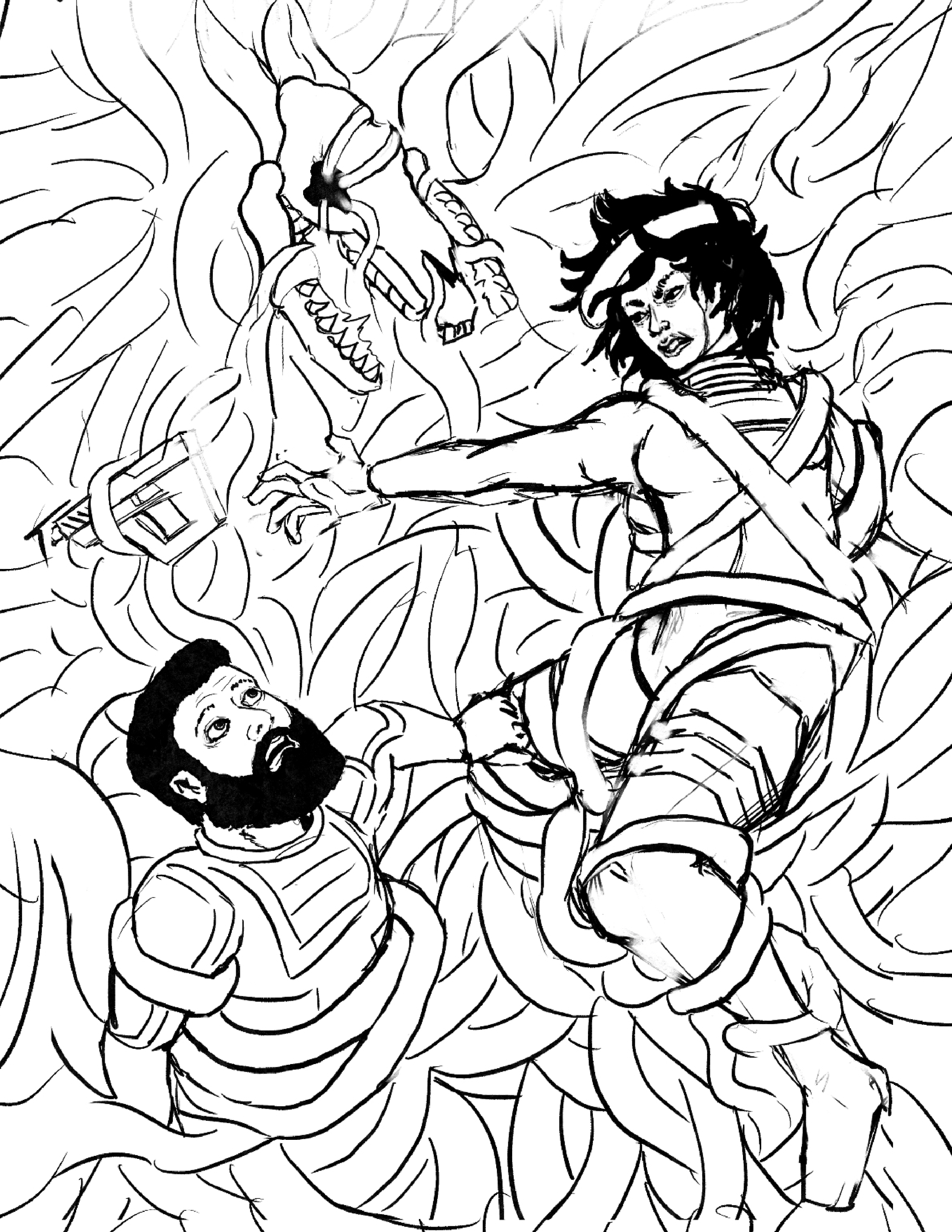 Building highlights on the darker areas and building up dark shadows helped clarify the piece and make everything clear.